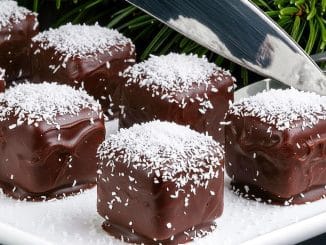 Необходими продукти: 500 грама обикновени бисквити 100 грама орехи 120 грама захар 60 грама какао на прах 250 милилитра прясно мляко 1 чаена лъжичка ванилова захар 150 грама краве масло За ганаша: 80 грама тъмен […]