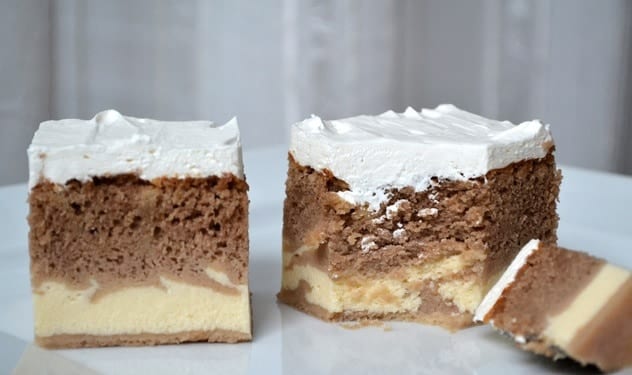 По време на печенето десертът ще се надуе, но това не трябва да ви притеснява. Извадете и оставете да се охлади.