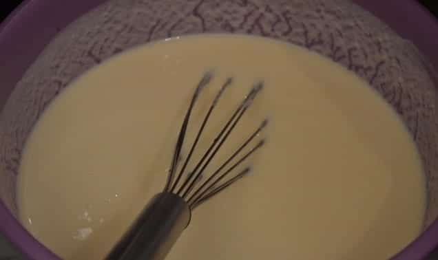 Пригответе сместа за чийзкейк, като в отделен съд смесете заквасената сметана с яйцата, нишестето, брашното и захарта.