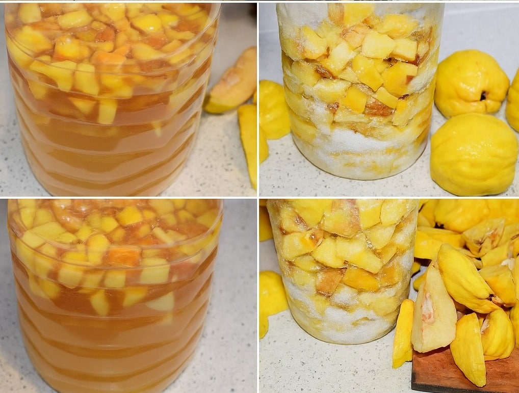 Прехвърлете дюлите в голям съд (използвахме чиста пластмасова бутилка с широко гърло). Затворете плътно и оставете на топло място (близо до печката или в топъл килер) за 5 дни.