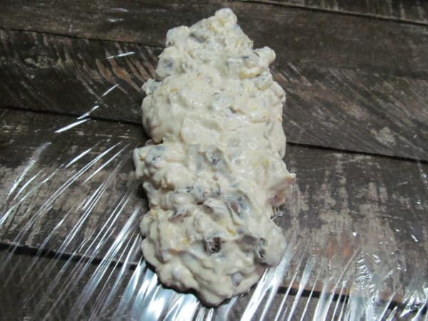 Поставете върху прозрачно фолио и разстелете в някаква форма. След това увийте добре и сложете в хладилник. Оставете за 5-6 часа или най-добре за 1 нощ.