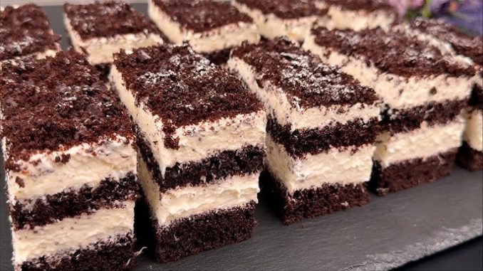 Така приготвения блат сипете във форма за печене с размери 25 на 15 сантиметра, покрита с хартия. Сложете в предварително заграта до 180 градуса фурна и печете за 30 минути или до суха клечка. Извадете и оставете да се охлади напълно.
