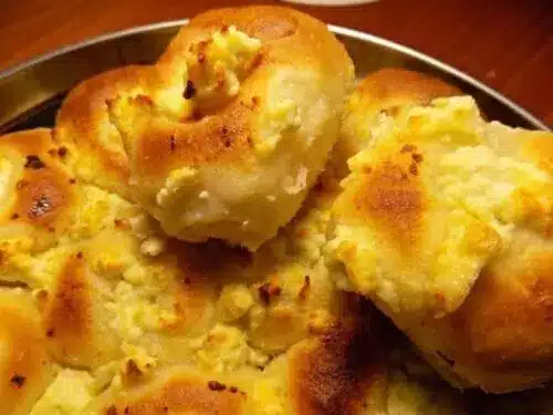 Активирайте маята с 1 чаена чаша топло прясно краве мляко. В купа смесете брашното и солта. Разбъркайте и направете кладенче. В средата добавете маята, 1 чаена чаша прясно краве мляко и 5 супени лъжици олио.