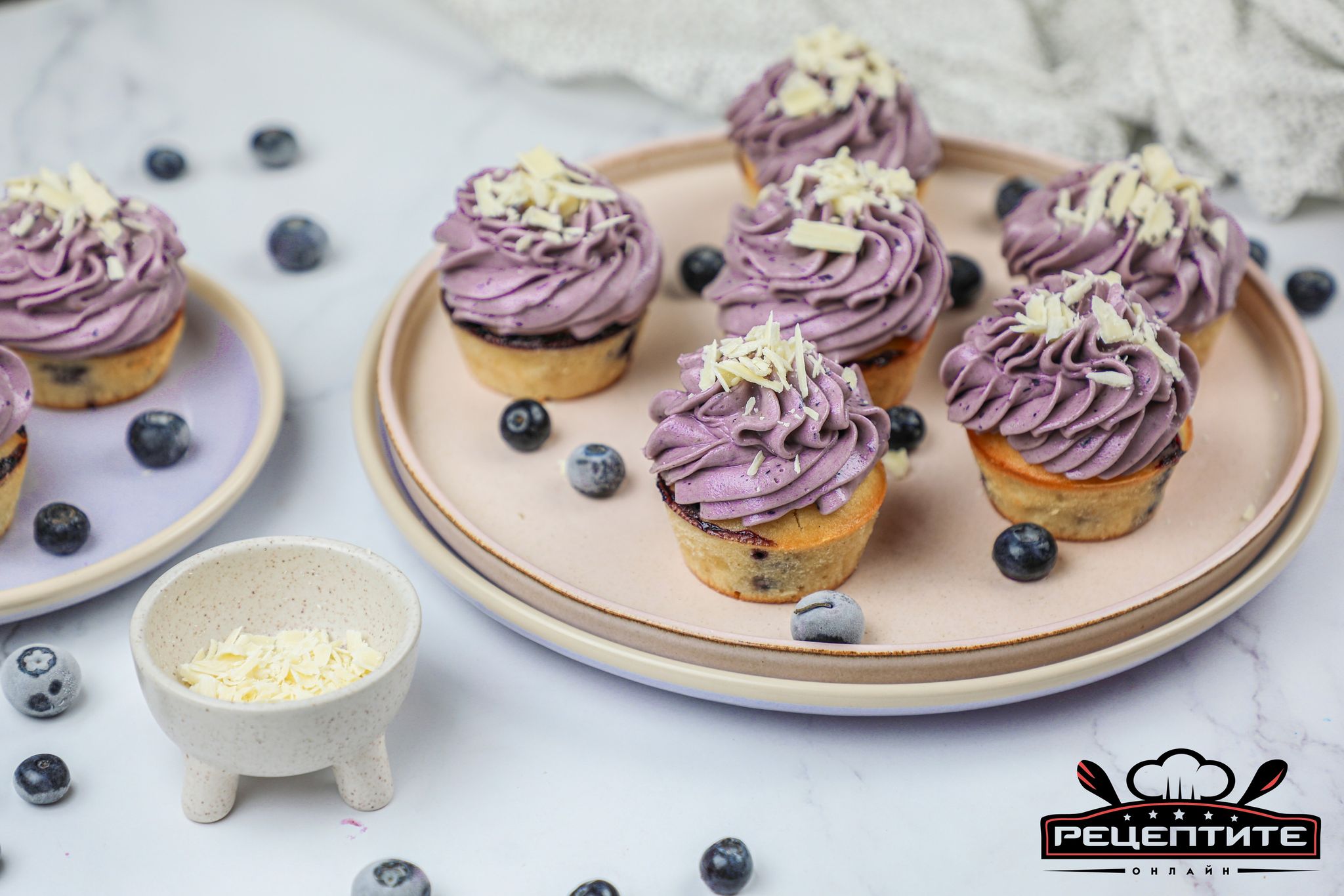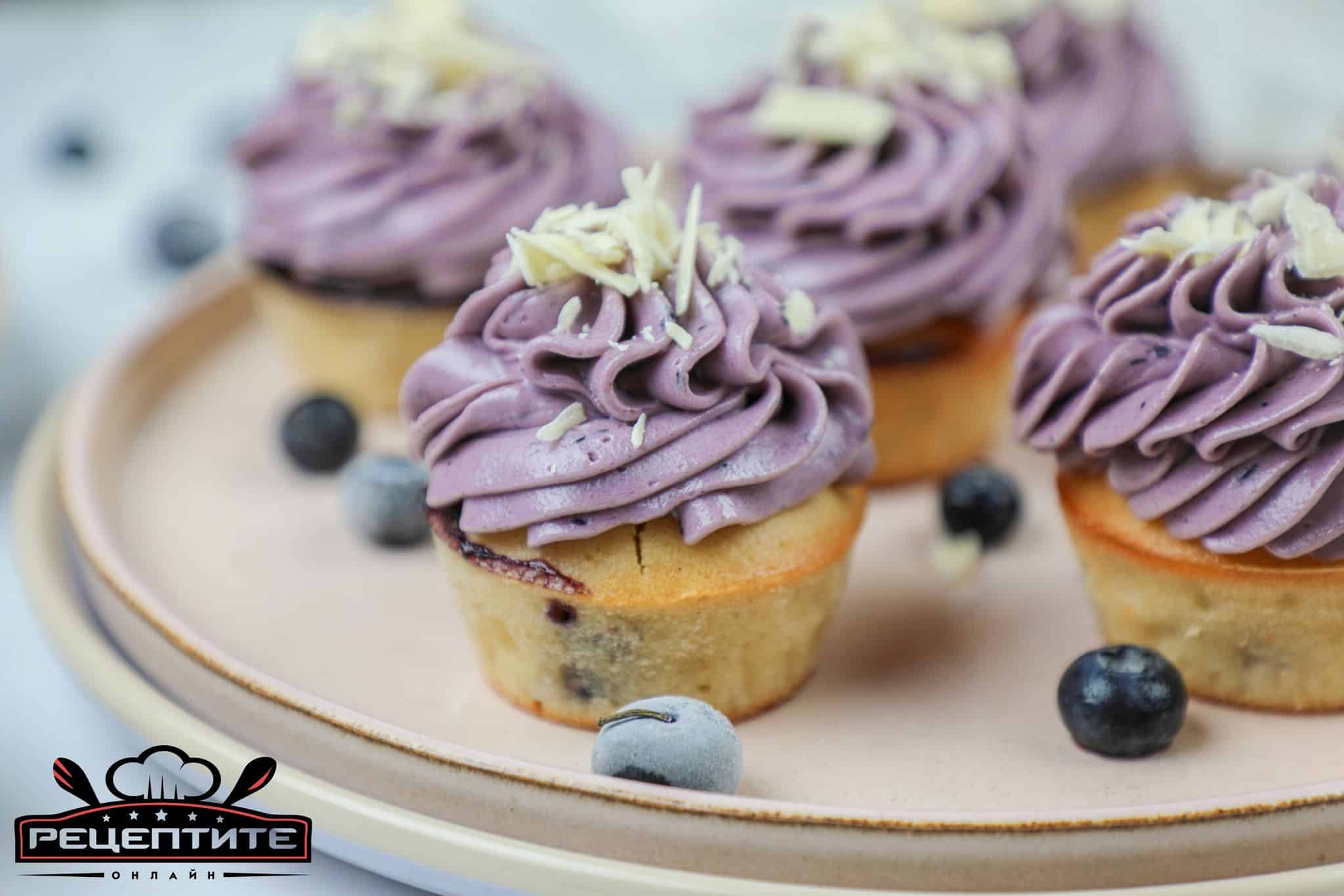 Поставете във фурната и печете мъфините около 25-30 минути или до златна коричка. Периодично проверявайте дали са добре изпечени, като вкарате клечка за зъби в едно-две кексчета. Ако тя излезе суха, значи са готови. Извадете и оставете да изстинат напълно преди да шприцовате крема.