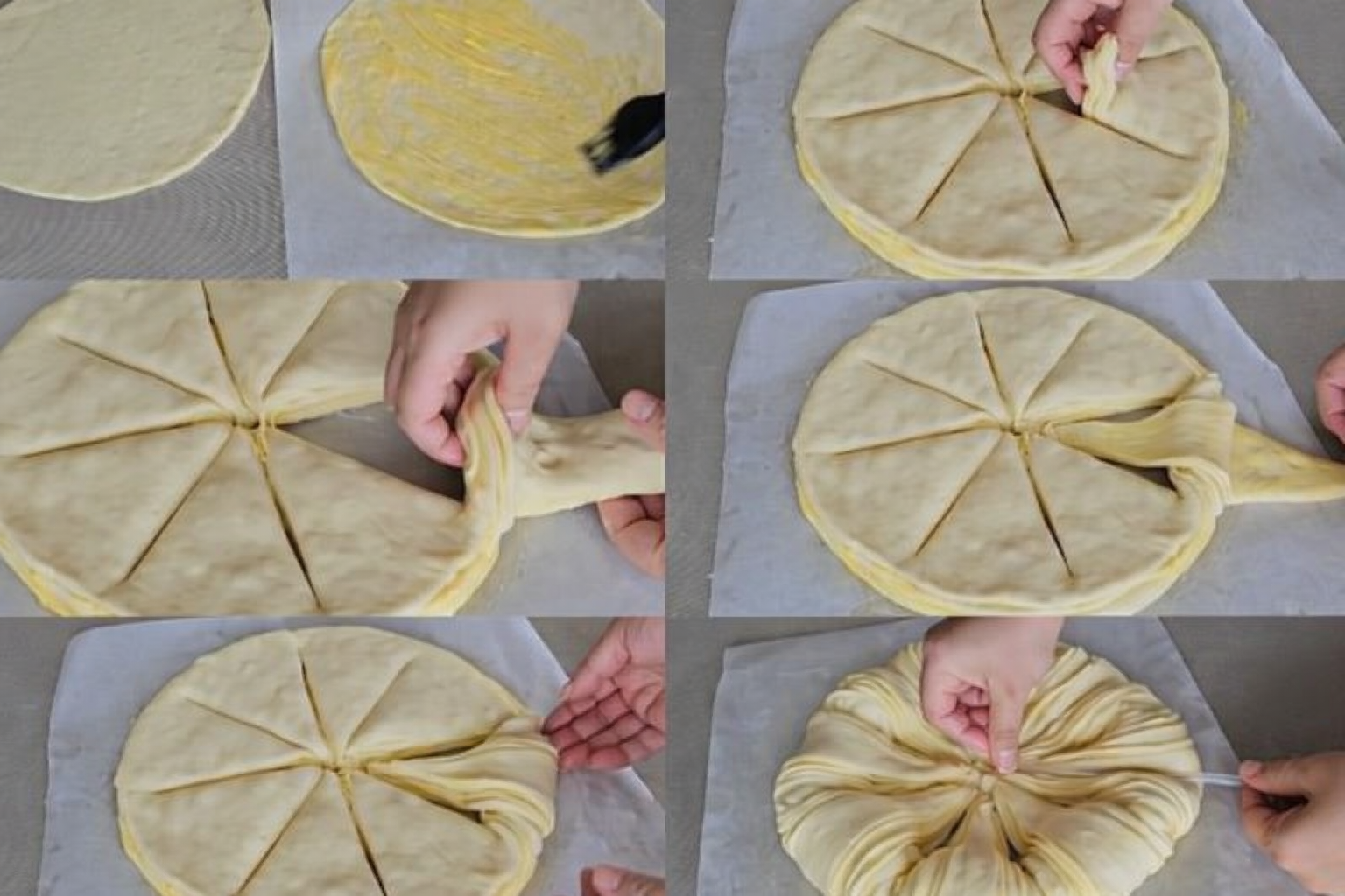 Оформете питката, като с нож нарежете на 8 триъгълника, като не режете до край, а оставите около 1,5 сантиметра неразрязани към края.  Обърнете всеки триъгълник с главата надолу, към противоположната страна.