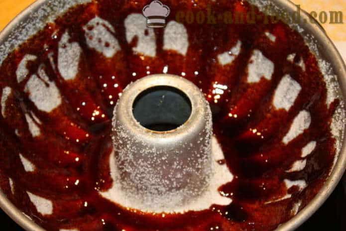 Загрейте фурната до 180 градуса. Вземете форма за печене и я намажете с растителна мазнина.  Поръсете равномерно с кристалната захар цялата форма. Оставете я настрана.