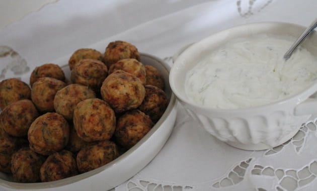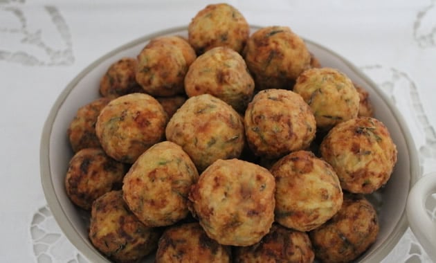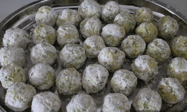 Вземете малка лъжица от сместа и оформете топки. Оваляйте в брашно.
