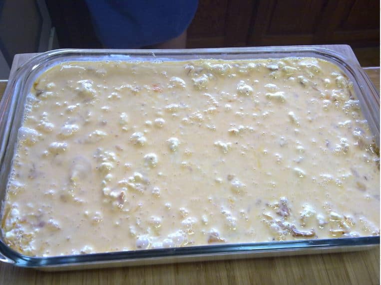 Върнете във фурната и печете на 200 градуса за 15 минути или до златисто. Извадете, нарежете и поднесете.
