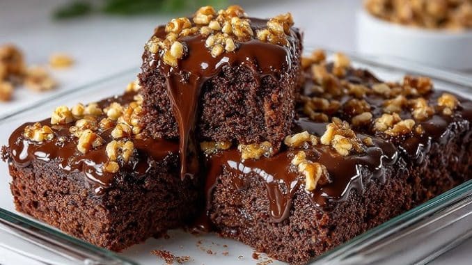 Оставете за 1-2 часа или докато стегне напълно. След това извадете и поръсете с нарязани орехи или други ядки. Нарежете и поднесете.