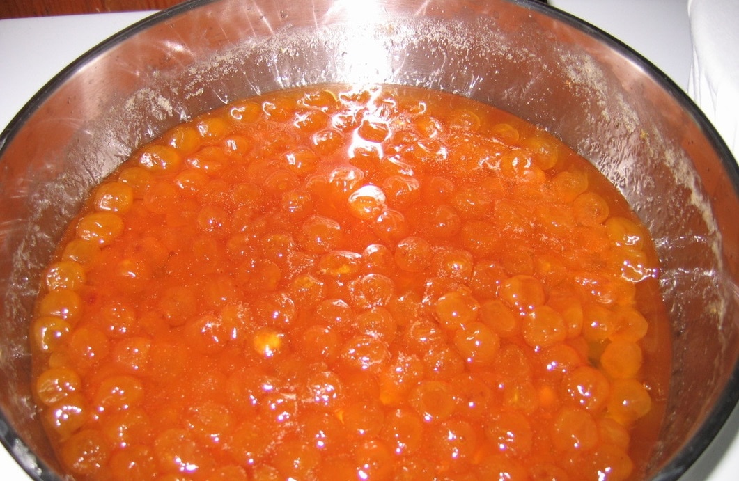 Покрийте съда с влажна чиста хавлиена кърпа и оставете за една нощ. Тази стъпка е важна, защото позволява на черешите да пият сока.
