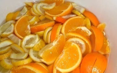 Почистете лимоните и портокалите и ги нарежете на резенчета. Полейте с течността от коприва и добавете лимоновата киселина. Разбъркайте и оставете за 24 часа.
