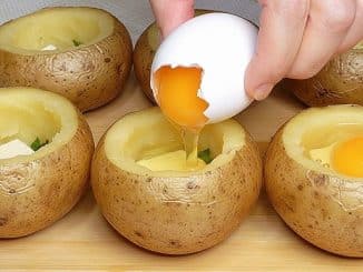 Необходими продукти: 4 едри картофа 1 чаена лъжичка сол малко пресен магданоз 100 грама кашкавал 100 грама шунка малко растително масло 1-2 скилидки чесън 4 яйца черен пипер, на вкус Начин на приготвяне: Измийте добре […]