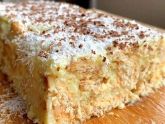 Необходими продукти: За крема: 500 милилитра прясно мляко 40 грама ванилов пудинг (на прах) 10 грама ванилова захар 5-6 супени лъжици захар (или на вкус) За основата: 210 грама бисквитки (или стари курабийки) 3 супени […]