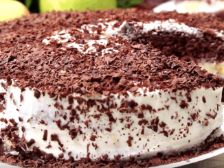 Необходими продукти: За блатовете: 5 яйца 1 чаена чаша захар 1 ½ чаена чаша брашно 1 бакпулвер 1 ванилия 3 супени лъжици олио 2 супени лъжици какао на прах 2 супени лъжици вода За крема: […]