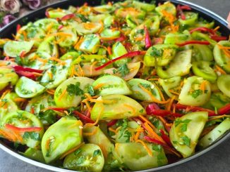 Необходими продукти: 6 броя пилешки пържоли от бут За марината: 2 скилидки чесън 1 чаена лъжичка червен пипер 1/2 чаена лъжичка черен пипер 1 чаена лъжичка кимион 1 равна чаена лъжичка сол 4-6 супени лъжици […]