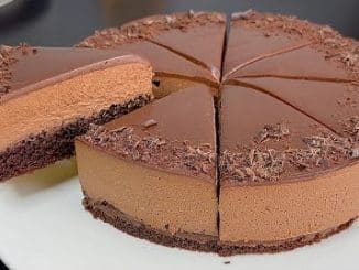 Необходими продукти: За основата: 2 яйца 50 грама захар 60 милилитра олио 30 грама прясно мляко 60 грама брашно 2 супени лъжици неподсладено какао 10 грама бакпулвер 1 щипка сол За шоколадовия мус: 600 грама […]