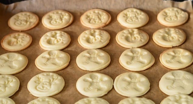 Покрийте форма за печене с хартия и поставете сладките. Сложете в предварително загрята до 180 градуса фурна и печете за 7 минути. Внимавайте, сладките да не препекат, защото ще станат твърди.