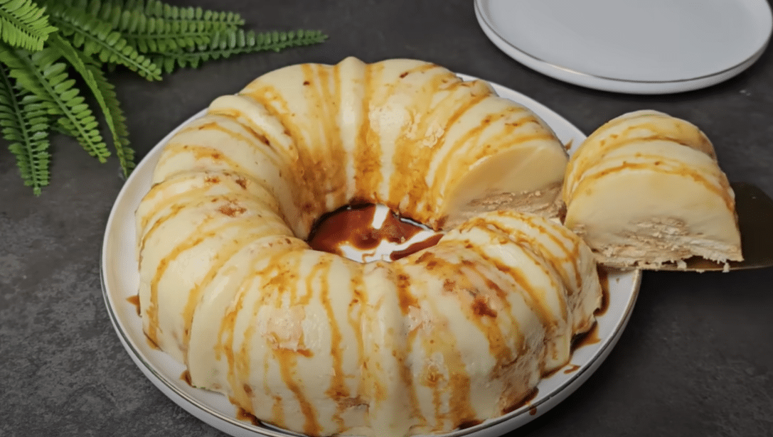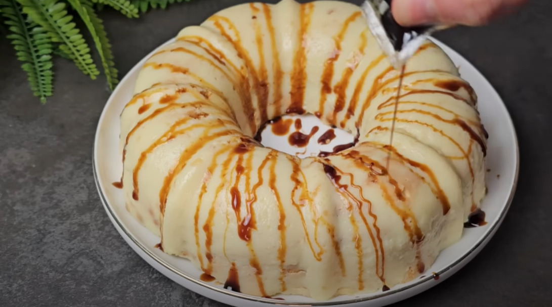 Отстранете формата и декорирайте десерта с топинг „Карамел“. Нарежете и поднесете.
